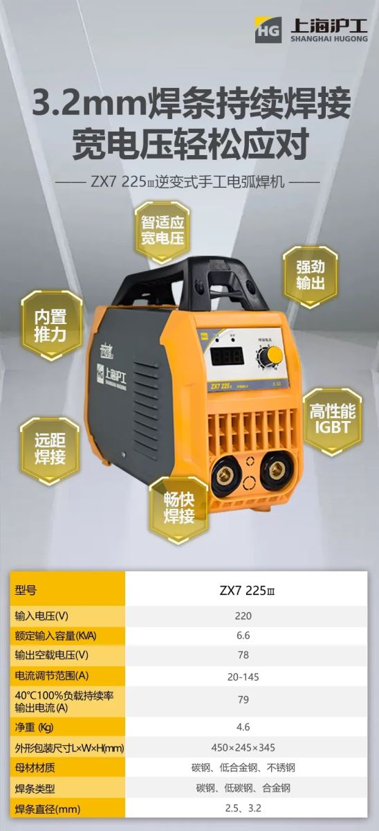 【沪工焊机】ZX7 225III逆变式手工电弧焊机3.2mm焊条持续焊接!